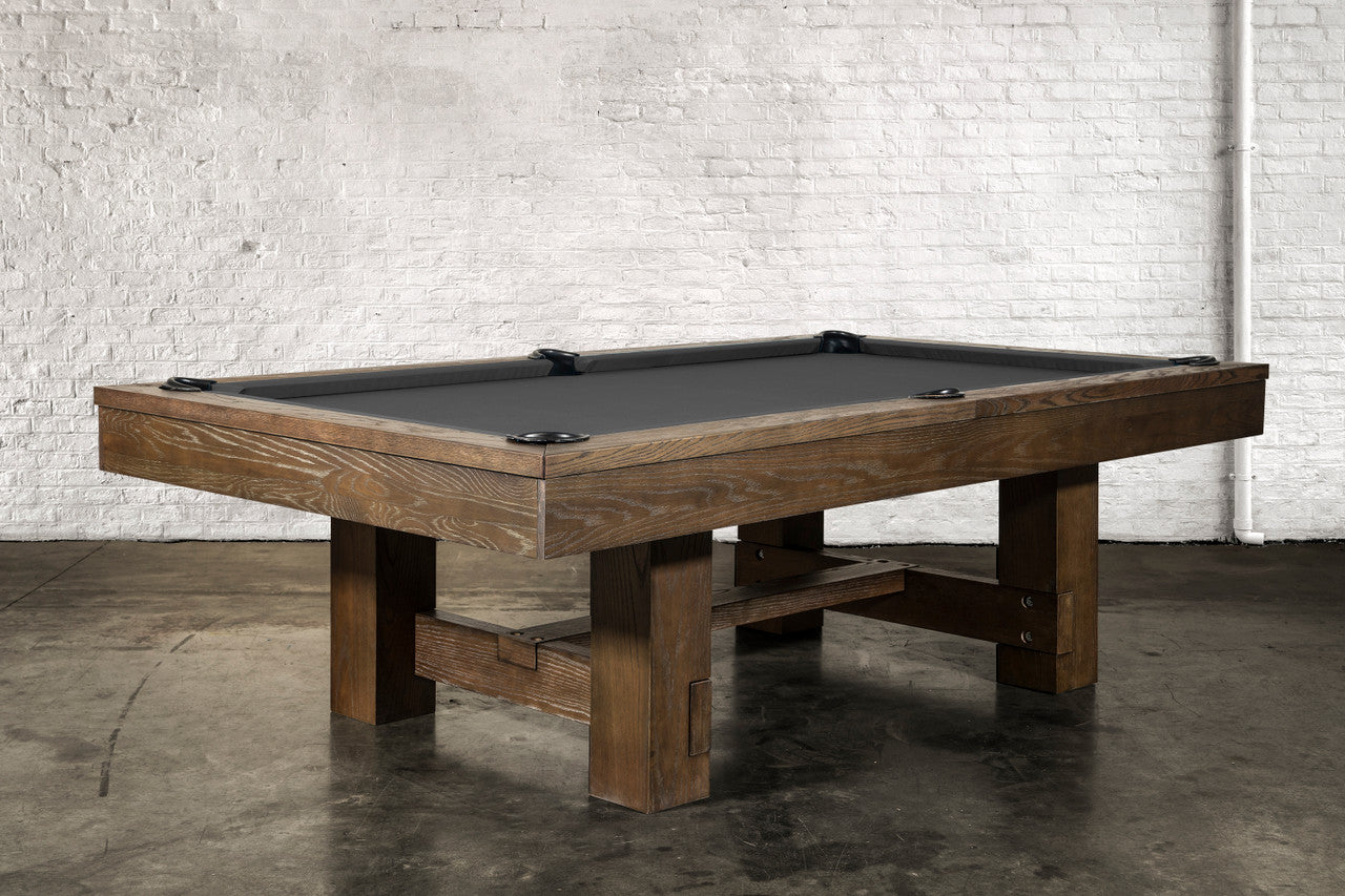 The Westwood Pool Table offers a simple and rustic approach to fun and games. Styled with metal legs and rustic rails in 3 colors, brown wash, charcoal, white wash finish.