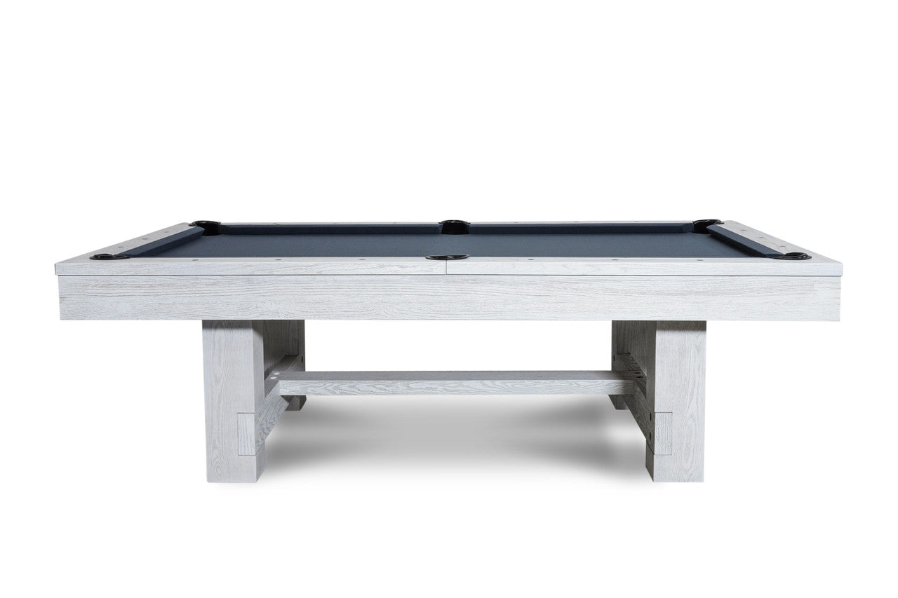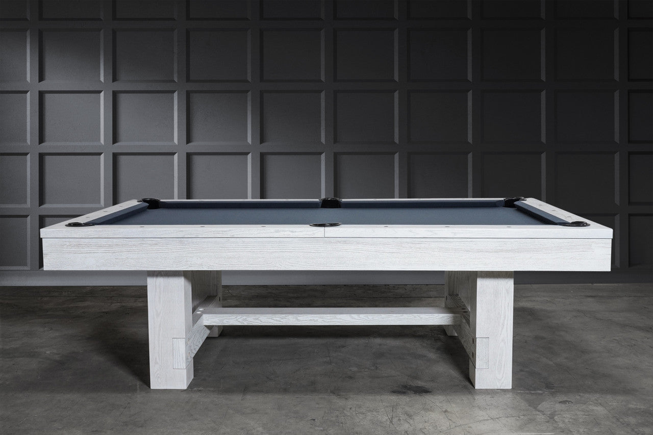The Westwood Pool Table offers a simple and rustic approach to fun and games. Styled with metal legs and rustic rails in 3 colors, brown wash, charcoal, white wash finish.