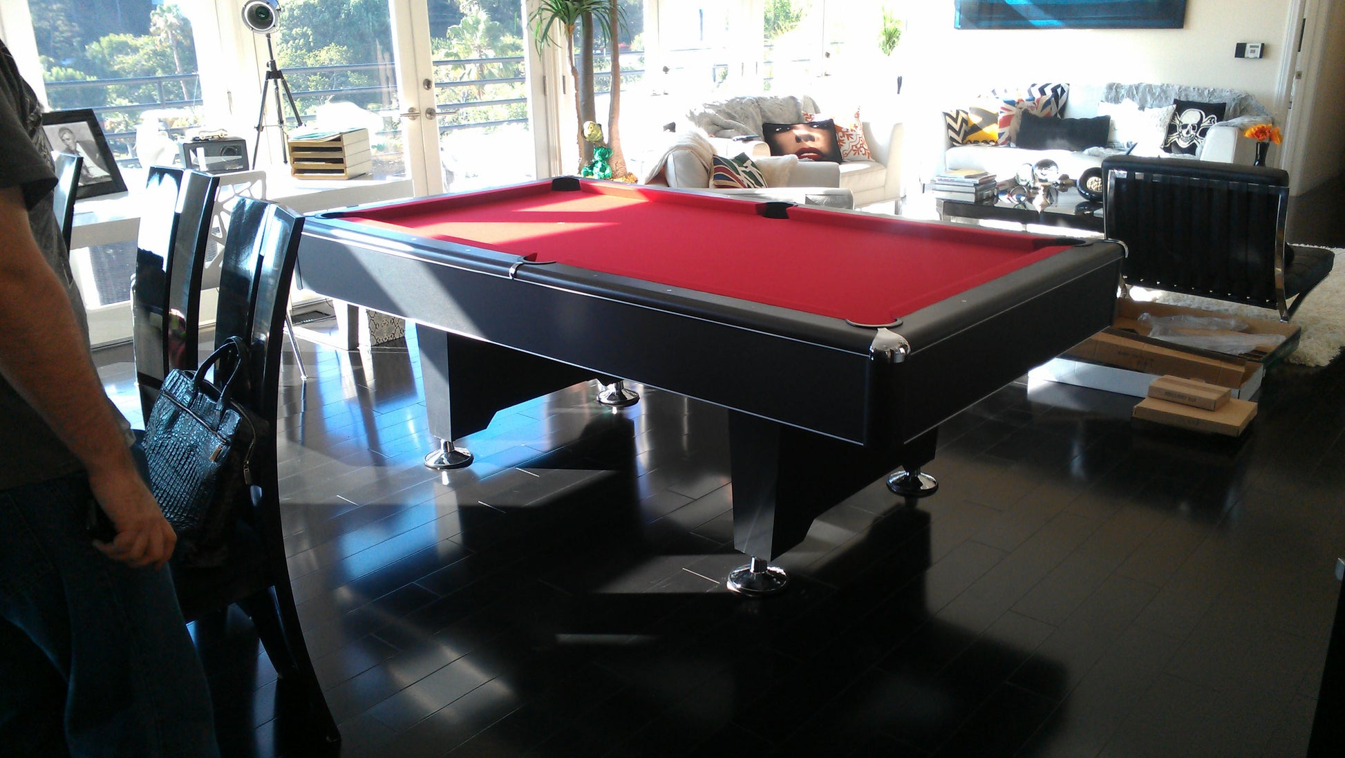 This Pool Tables are made with solid wood, 1" thick diamond honed slate, maple wood frame construction, leather drop pockets, any color felt at you choose with optional Tournament cloth, super speed cushions k-66 100% gum rubber.