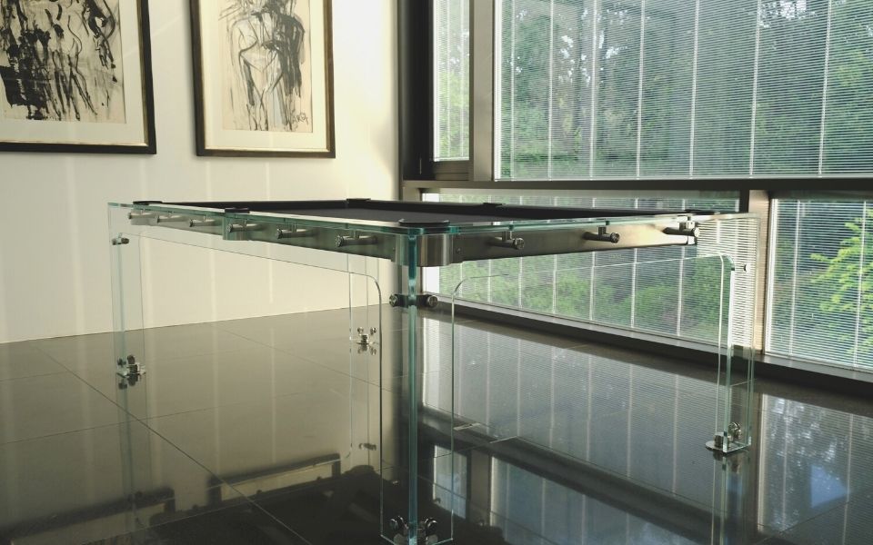 Crafted from a robust metal frame and topped with precision-machined slate, the CARAT LIGHT blends the timeless appeal of billiards with a contemporary, architectural aesthetic. Its defining feature — a transparent design incorporating glass elements — transforms any interior or exterior setting into a statement of elevated taste.