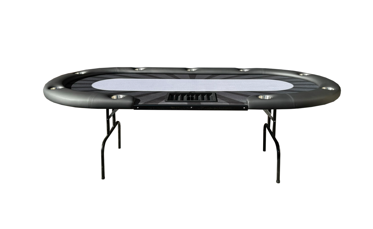 Elevate your poker nights with this premium 10-player poker table, designed for both comfort and durability. Featuring a padded layout and a full padded armrest, this table provides a professional casino experience. The sturdy folding legs ensure stability and easy storage, while the ten stainless steel drink holders keep refreshments close at hand.