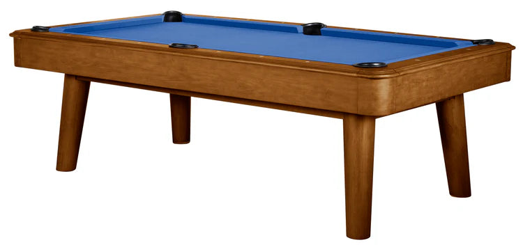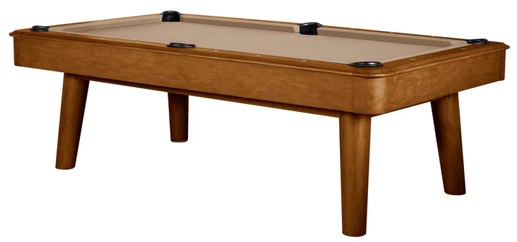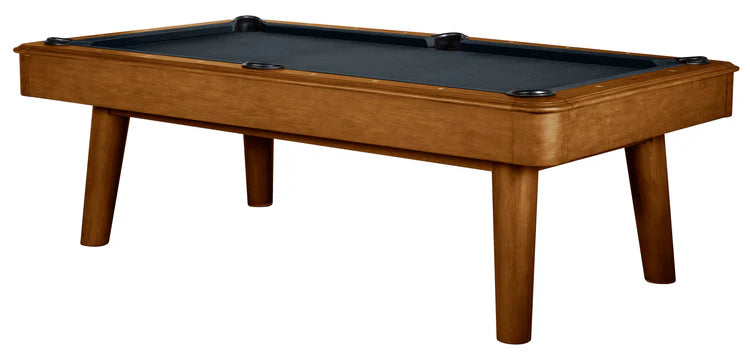 The Collins Pool Table is the ultimate in mid-century modern design. Angled legs and rounded corners on the cabinet make this one of the most distinctively designed pool tables in the industry. Oversized top rails and larger blinds give this table a modern look and feel. With quality features including one inch backed slate, gum rubber rail cushions, hardwood construction, multiple exclusive finishes and a lifetime warranty, this table is one that will provide your family many years of enjoyment.