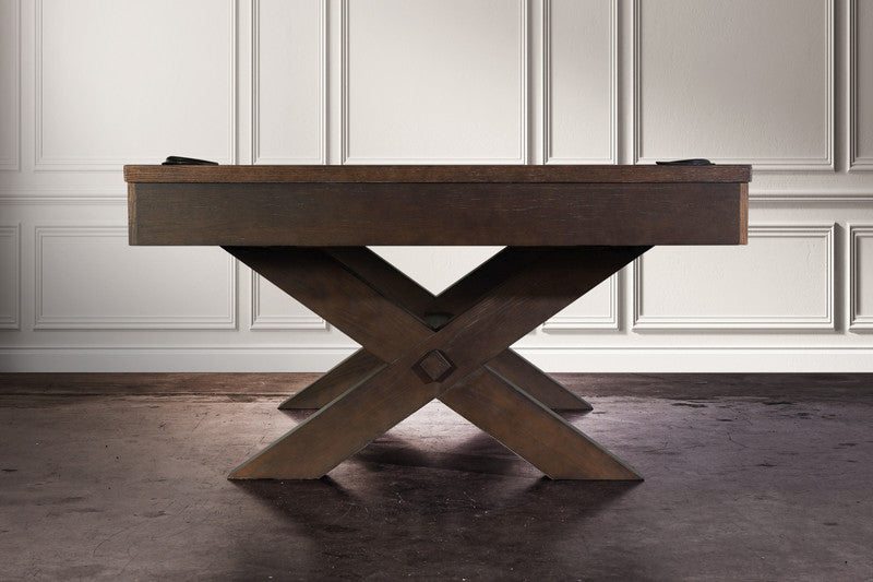 Available in three Colors Charcoal, white wash, brown wash , The Colorado Pool Table offers a simple and rustic approach to fun and games. Styled with cross beam resembling details you might find in an old country farmhouse.