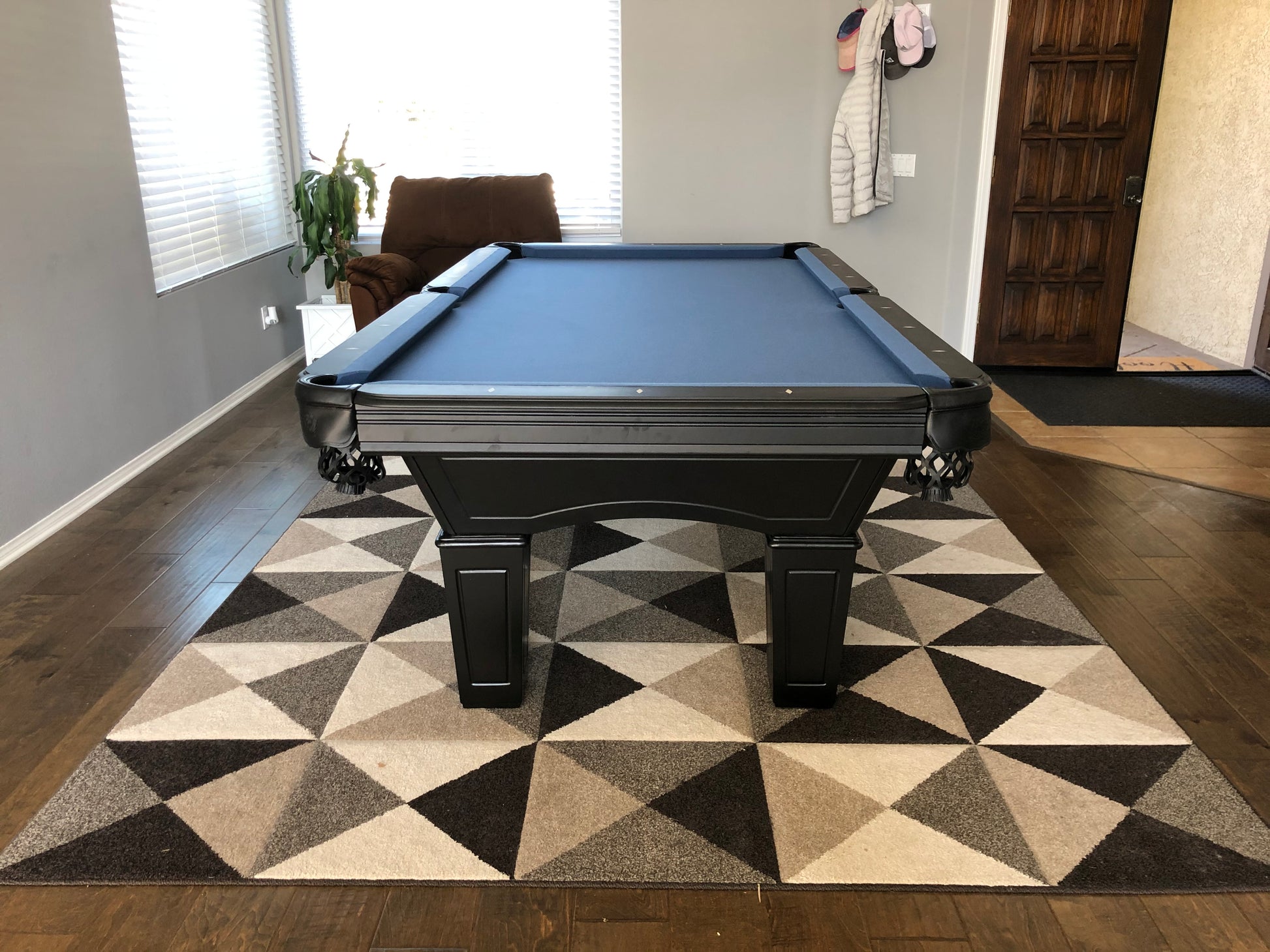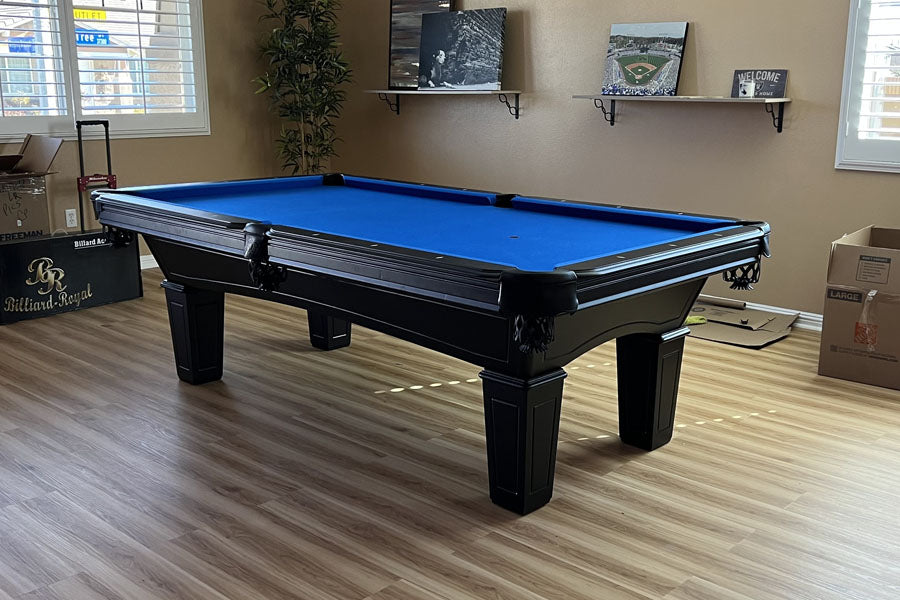 This Pool Table comes with 1" thick diamond honed slate, w/ 3/4 liner wood, maple wood frame construction, any color felt at your choice, mother of pear diamond sides