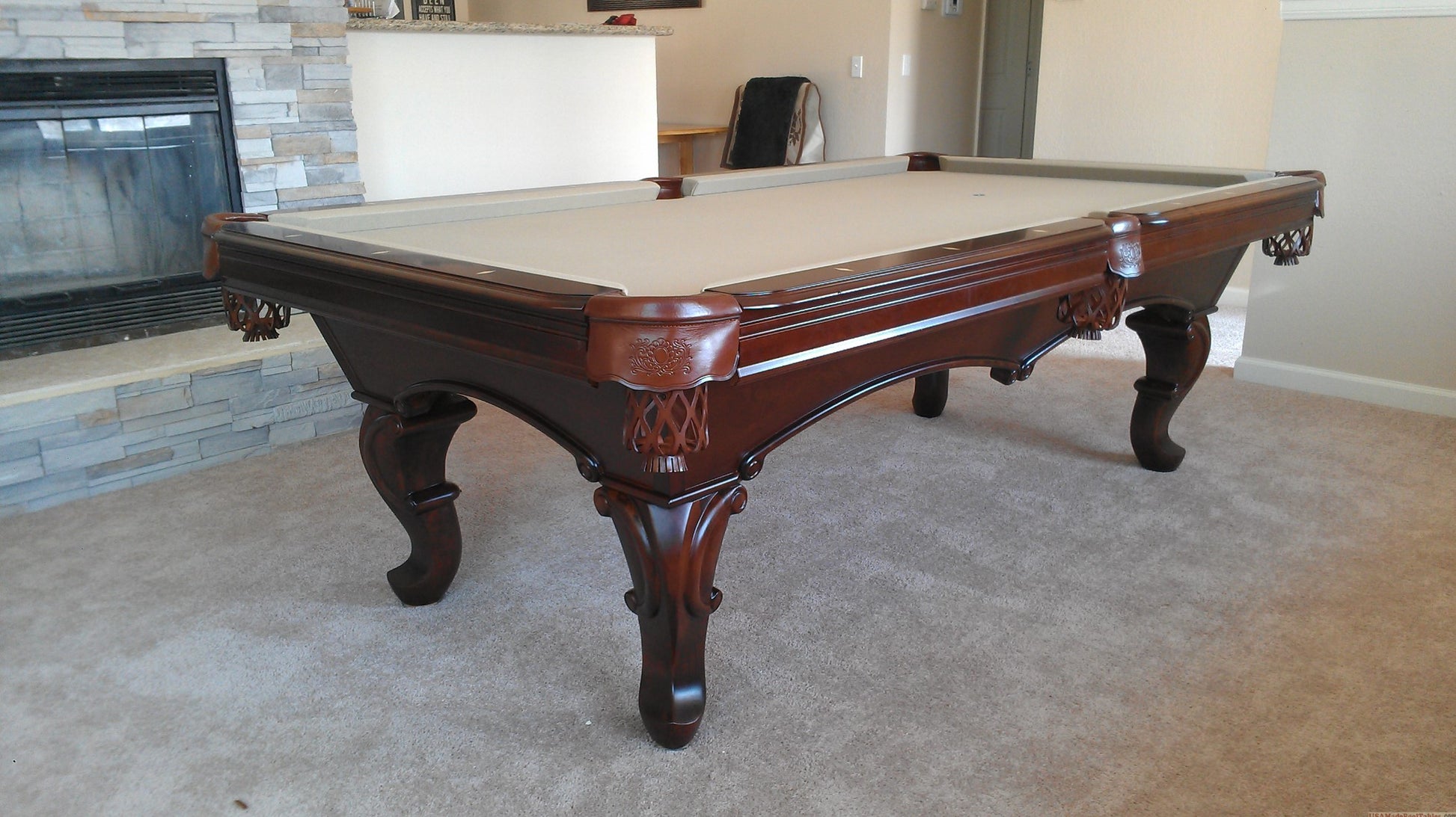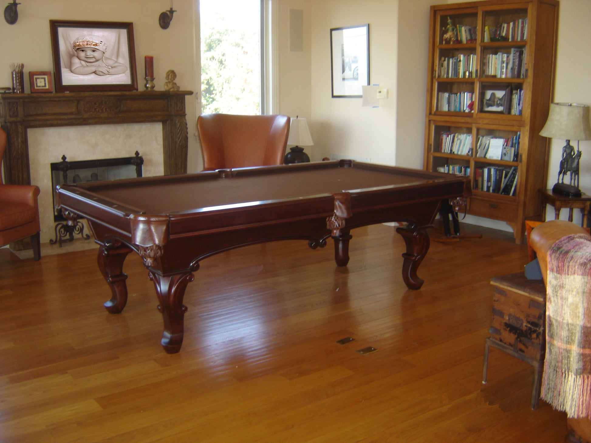 This Pool Tables are made with solid wood, 1" thick diamond honed slate, maple wood frame construction, leather drop pockets, any color felt at you choose with optional Tournament cloth, super speed cushions k-66 100% gum rubber.