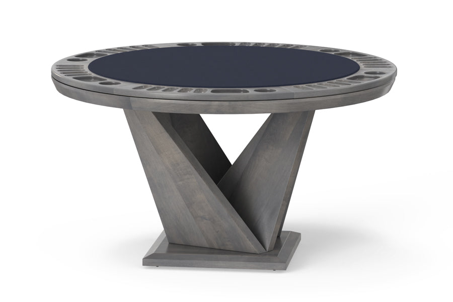 The Origami Collection offers a beautifully crafted, modernist game table that seamlessly doubles as a dining table with a simple flip of the top. Designed with a sleek, streamlined aesthetic, this versatile piece is built to last, made-to-order by a family-owned company that has been in business since 1953. The table features a solid hardwood frame made from locally sourced maple and other hardwoods, ensuring durability and long-term use.