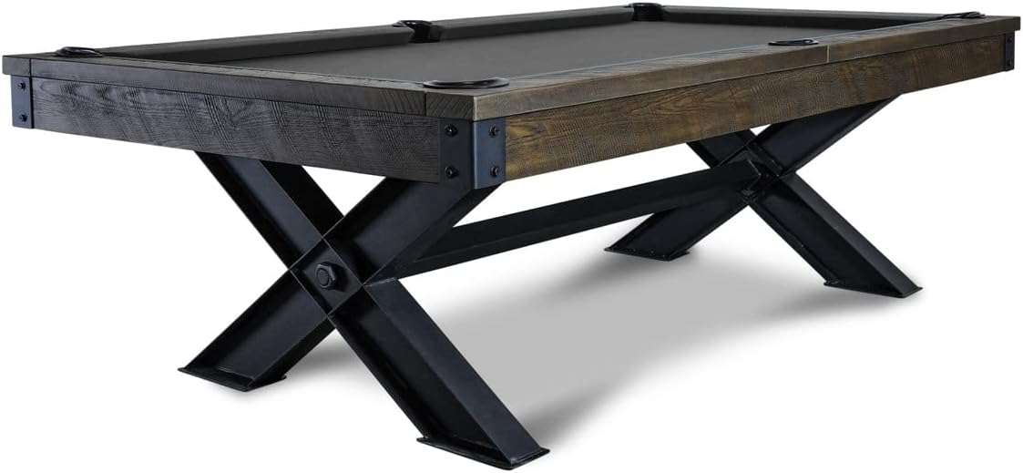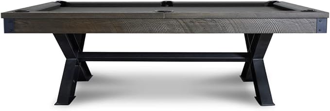 The Princeton Pool Table 8' Slate Pool Table exudes style with its modern wood cradle in Barnwod finish and industrial black metallic legs. Give your home or office space a splash of rustic character. The Princeton Pool Table comes with a 3-piece slate play surface and a basic accessory kit so you can begin play immediately. Add a convertible dining top to create a multi-functional table.