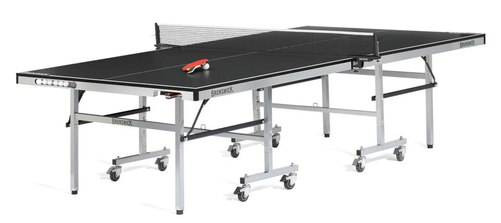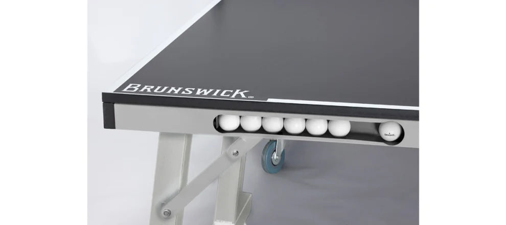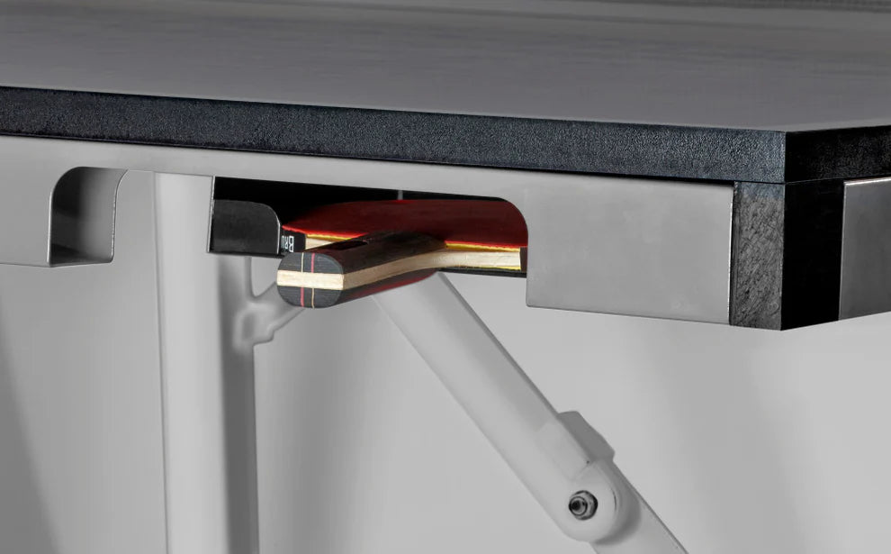 Our latest entry into the table tennis game is as powerful as its name suggests. Smash 7.0 features a classic black play surface, matching net and net clips, with a sturdy 25mm-thick playing field for optimized performance. A strong undercarriage ensures exceptional strength and stability, while the easy fold-up system makes moving and storage quick and convenient. Smash 7.0 provides built in compartments for convenient storage of the included two paddle / 3-ball accessory set. Curbside delivery. Some assembly required.