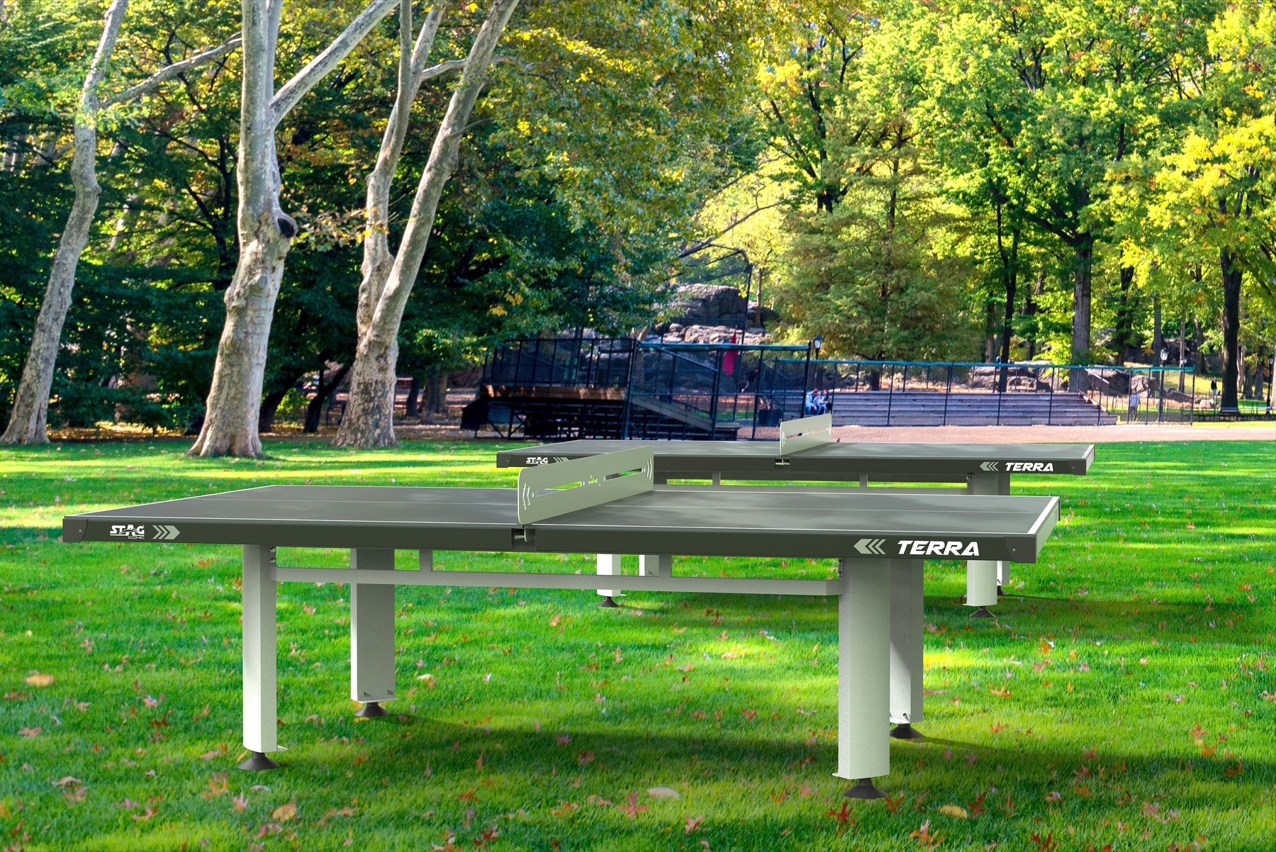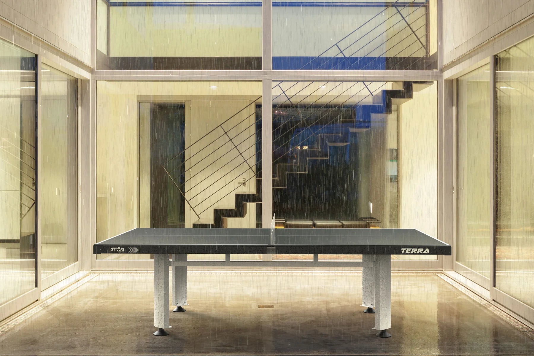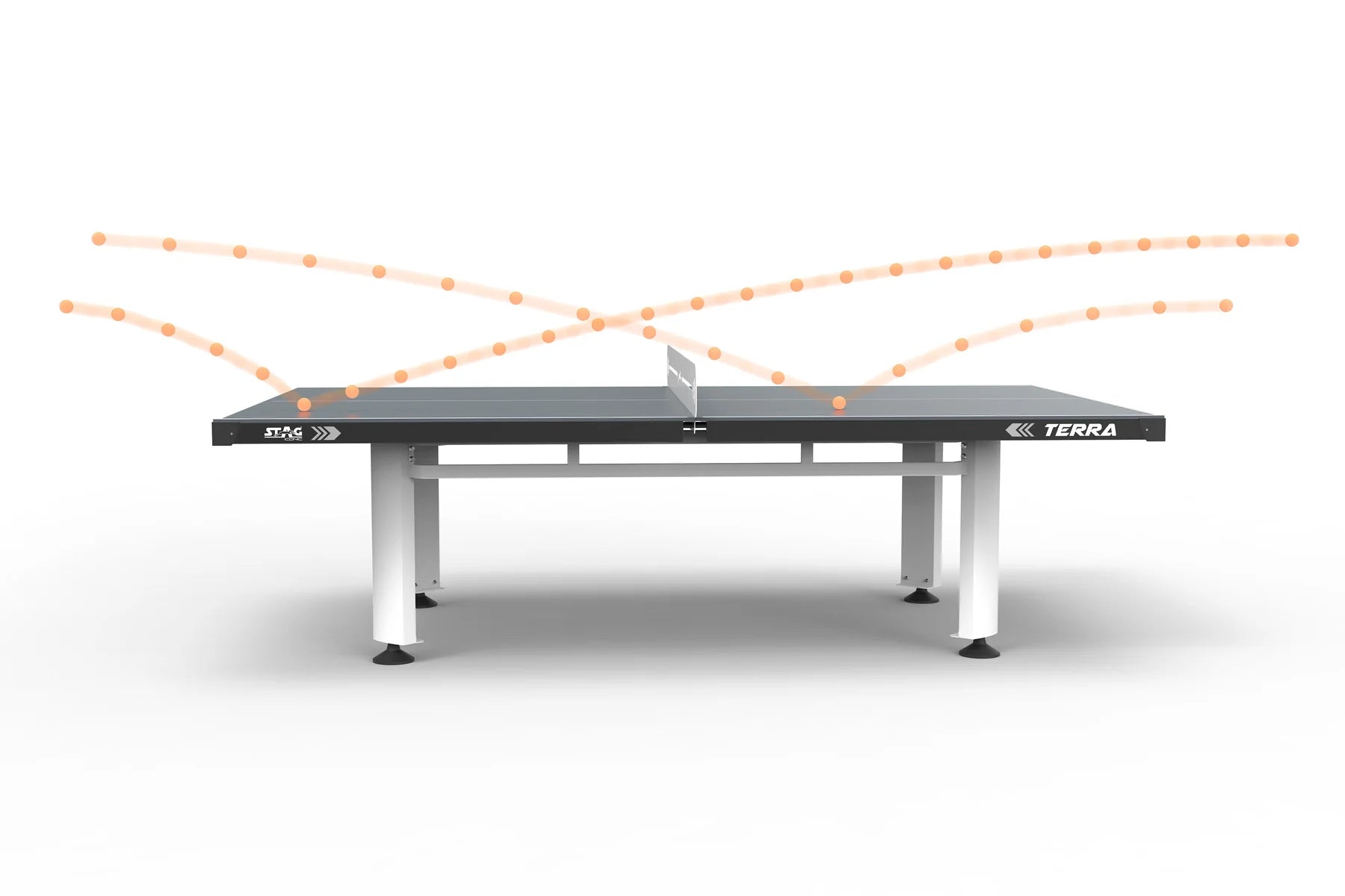 The robust and fully stationary STAG® Terra Outdoor is perfect for parks, hospitality and home settings. The proprietary and weatherproof PRO-TEC8 composite top provides durability for outdoor use while offering high performance playing characteristics including true ball bounce. The net may be removed easily enough when desired to convert from play to dining and entertainment. The Terra Outdoor offers an elegant and robust design to provide excellent playing characteristics combined with durable weatherproof construction for either indoor or outdoor applications.
